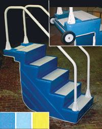 Triad Technologies’ ADA Easy Stair is fully compliant with all 2010 ADA guidelines, plus NEC Bonding Codes. The portable option for secondary means of access does not require anchoring or bonding. Featuring custom trim and entrapment skirts, it now also includes a two-step entry platform option, wear strips for the gutter lip, foot pads for vinyl liners and a strap-on deck dolly.