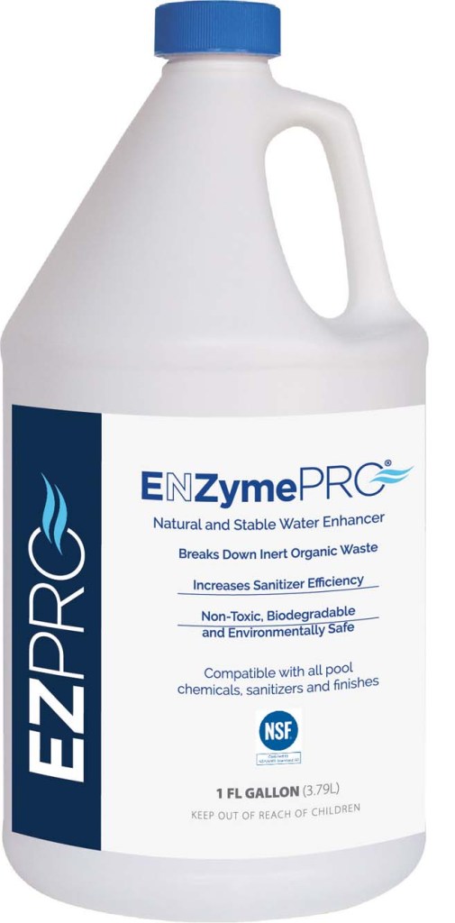 ENZymePRO contains natural enzymes, which are designed to safely break down organic contaminates, oils, sunscreen lotion, and more. It’s formulated to help reduce the regular use of ancillary chemicals, such as algaecides, filter cleaners, clarifiers, and lessen the need for regular shock treatments when used as directed.
