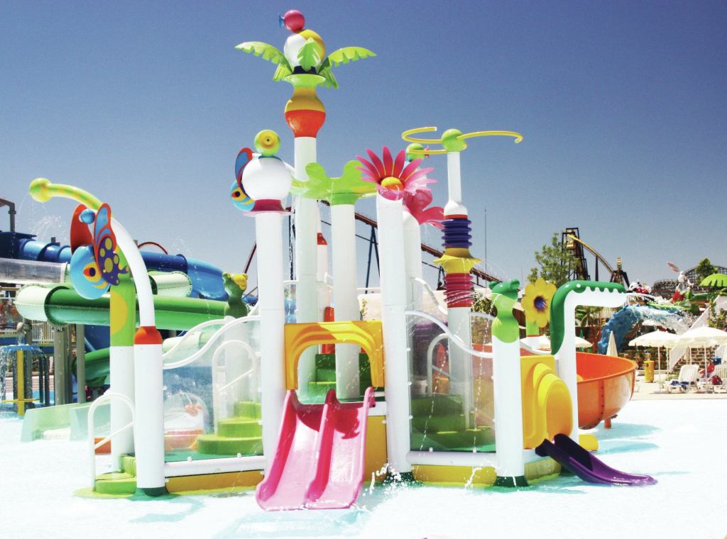 AQUATROPICA, made by Empex Watertoys, is an interactive water playground with a lush, tropical theme that includes palms, birds, monkeys, bugs and the like. The spraypark is fabricated from nonferrous materials and comes with a lifetime corrosion warranty.