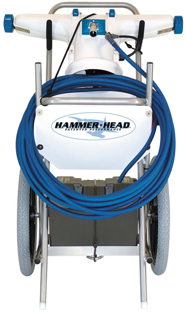 The Service-21, Service-30, Resort-21 and Resort-31 by HammerHead are all manually operated, self-contained, portable pool vacuums that provide rapid underwater cleanup using a 12V battery. They come with caddy cart and reusable debris bags. The bags are available in four different grades and two sizes. Resort units have a minimum operating depth of 12 inches. Contact: 561.451.1112; hammerheadvac.com