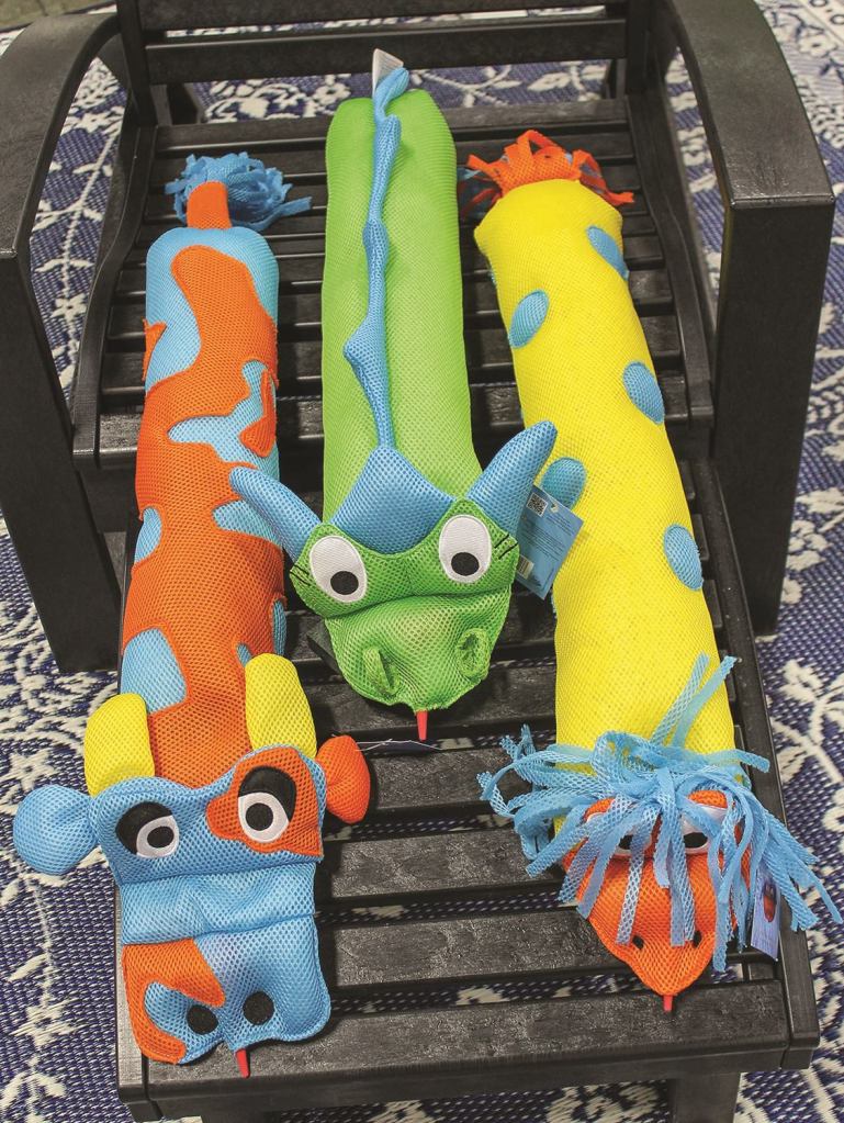 Zoo Noodles are 3-in-1 float, squirter and play pals. They are constructed of soft, marine-grade UV-protected fabric, filled with aquatic-safe foam beads. Besides being lightweight, they dry quickly, last from one season to the next, float up to 200 pounds and have multisensory features that appeal to children. Contact: 919.906.3408; zoo-noodles.com